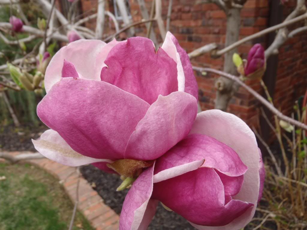 The saucer magnolia is doing its thing.  I never could get it to bloom until I finally figured out not to prune it in the fall.  http://i226.photobucket.com/albums/d...ps66b1eb21.jpg http://i226.photobucket.com/albums/d...pse80b1b9c.jpg A little flower sniffing a little flower... http://i226.photobucket.com/albums/d...ps0f7c5952.jpg |