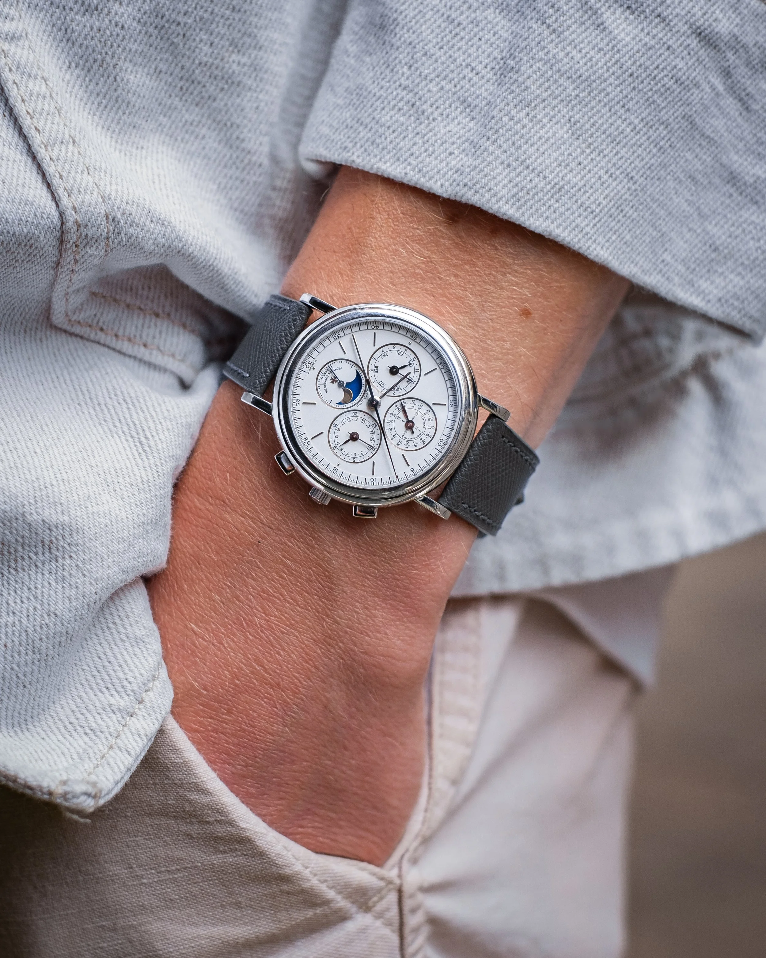 The watch is presented in unpolished condition with all engravings and hallmarks crisp. There are marks to the case consistent with age mostly in the form of hairlines, a small nick below the bezel at 6 o’clock and marks to the rear of lugs from historical strap changes. The bottom right lug appears to angle out ever so slightly, more noticeable from the back than front, not mentioned by VC in service. The dial is near mint ft. a subtle texture contrasting wonderfully with the moon-phase at 6. Finally the originally platinum buckle is also present. Mechanically full bill of health having just returned from a 2023 VC and now carrying its 2yr international warranty, also returned with VC archive extracts. A rare and complicated piece that has serious presence in the wrist and can hold its own against similar complications over twice the price tag. Price: 44,900GBP inc fully insured worldwide shipping. Watch located in London, UK. Payment method: Bank transfer only. Returns: Returns accepted if not genuine. Any questions or photo request please don’t hesitate to get in touch: Instagram: @watchbrotherslondon Email: ben@watchbrotherslondon.com Rolex Forum: Drop me a message Thank you. Ben https://images.squarespace-cdn.com/c...G?format=1500w https://images.squarespace-cdn.com/c...G?format=1500w https://images.squarespace-cdn.com/c...g?format=2500w https://images.squarespace-cdn.com/c...G?format=2500w https://images.squarespace-cdn.com/c...g?format=2500w https://images.squarespace-cdn.com/c...g?format=2500w https://images.squarespace-cdn.com/c...g?format=2500w https://images.squarespace-cdn.com/c...g?format=2500w https://images.squarespace-cdn.com/c...g?format=2500w https://images.squarespace-cdn.com/c...g?format=2500w https://images.squarespace-cdn.com/c...g?format=2500w https://images.squarespace-cdn.com/c...G?format=2500w https://images.squarespace-cdn.com/c...g?format=2500w https://images.squarespace-cdn.com/c...g?format=2500w https://images.squarespace-cdn.com/c...g?format=2500w https://images.squarespace-cdn.com/c...g?format=2500w https://images.squarespace-cdn.com/c...g?format=2500w https://images.squarespace-cdn.com/c...g?format=2500w |
