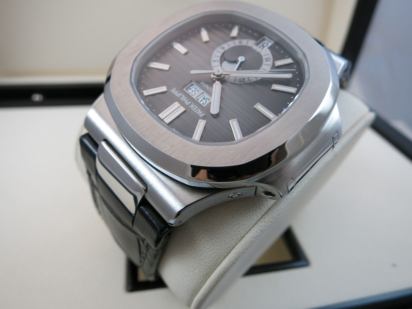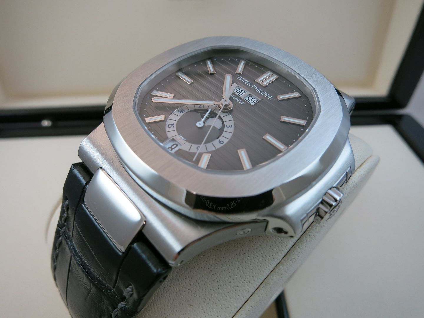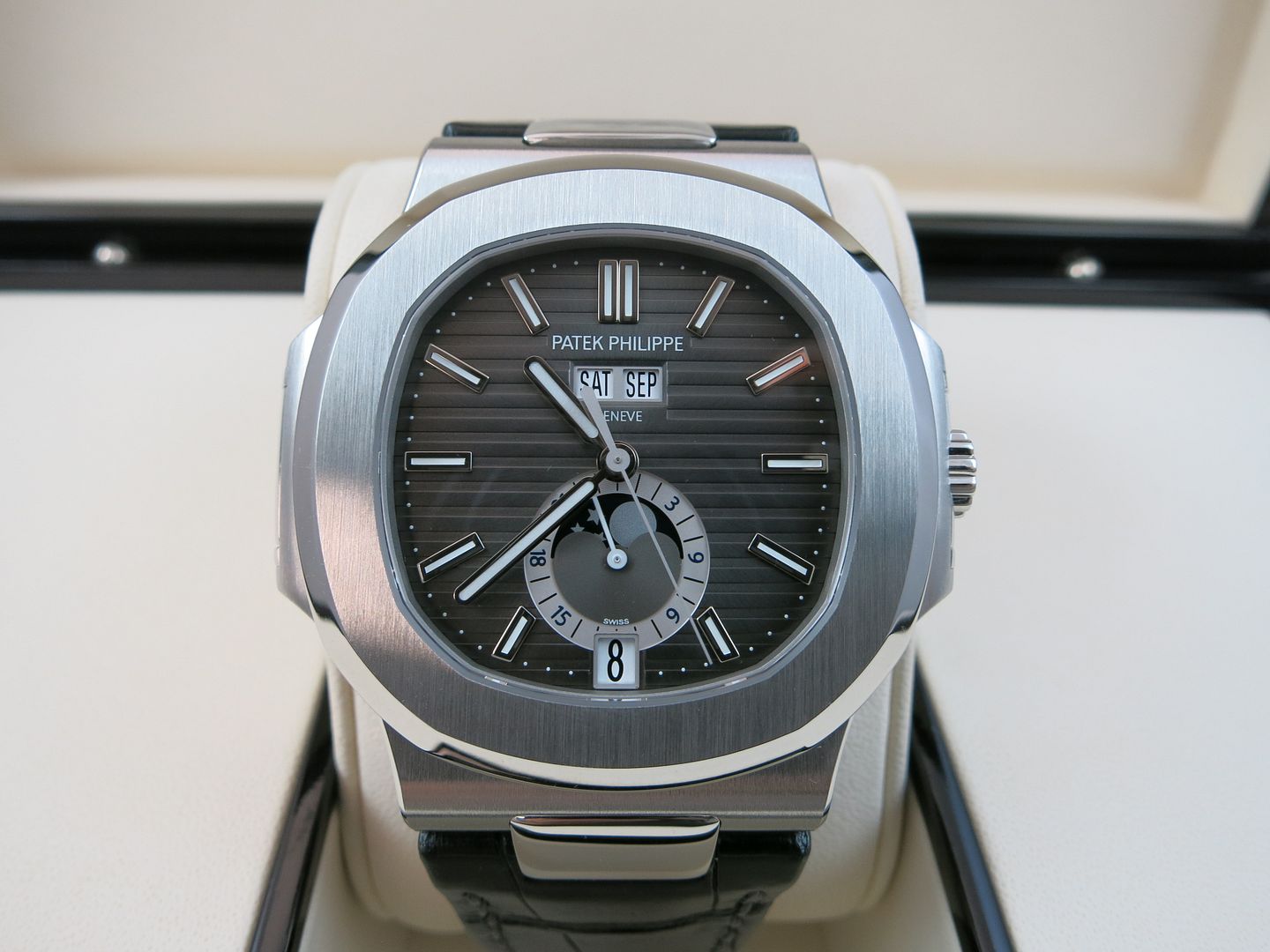 ![]() Watch: Patek Philippe Annual Calendar Nautilus 5726A with Grey Dial Condition: Mint condition Purchased:This watch was purchased in July 2017 and remains under factory warranty Time Keeping: Keeps Time within the Patek Seal of QC Comes With: Outer shipping box Outer box Inner Box Leather Folder Warranty Certificate All Manuals Pusher Hang tag Dust Cover I am asking $65,000 Modern Rolex and Patek Trades welcome ![]() Payment by Bank Wire Overnight shipping and insurance is included within the USA ![]() International Priority available for true cost Face to Face transaction welcome in West Hollywood CA ![]() Many worldwide references available (look for me in the who's who section) Contact: David Farkas Email: David@SwissWatchTime.com I also respond fast to PM's 1(424)-278-3666 Call/Text anytime We Offer Service repair and restoration as well I am an independent watch dealer/collector and not affiliated with Patek Philippe or HSWA. All my items are guaranteed authentic and I will stand by their authenticity ![]() ![]() ![]() ![]() ![]() ![]() ![]() ![]() ![]() ![]() ![]()