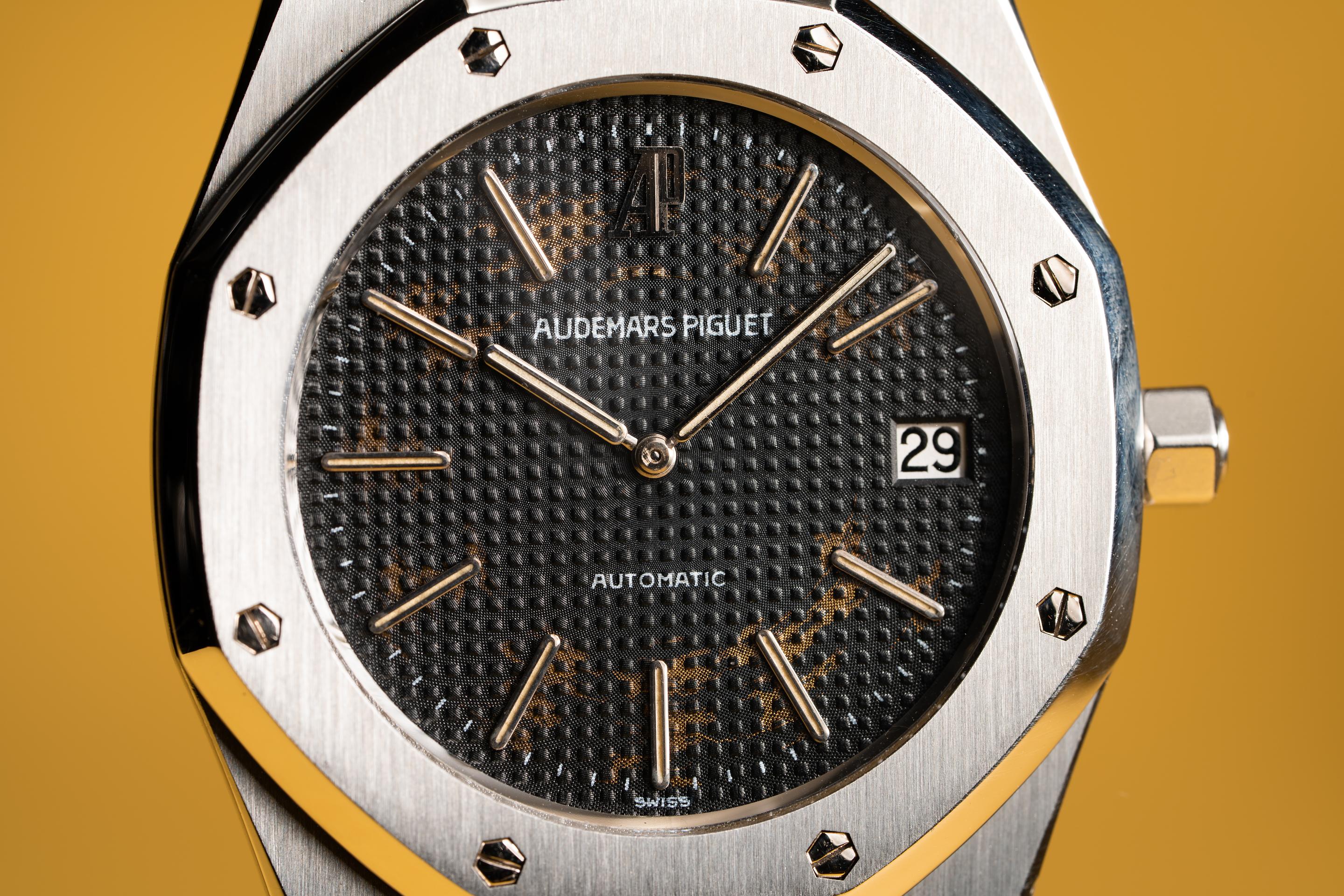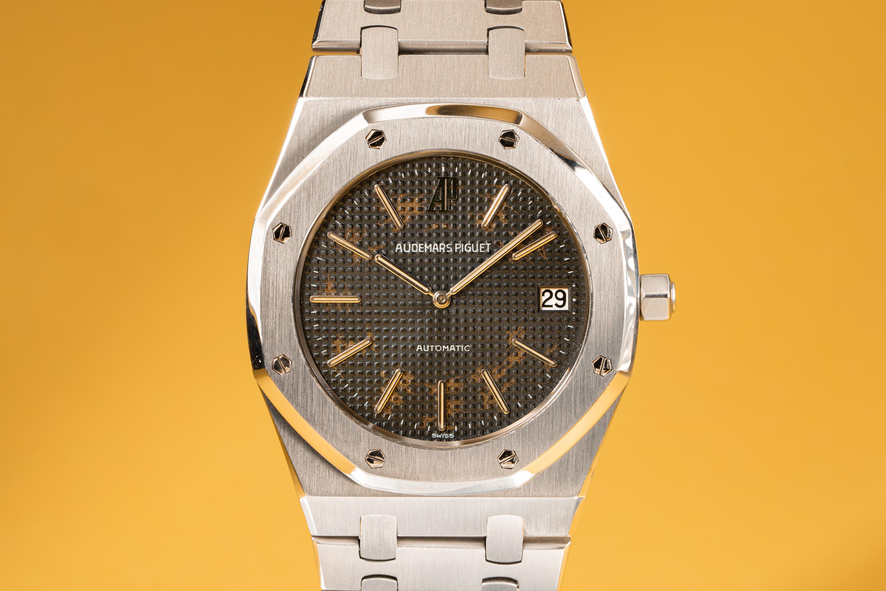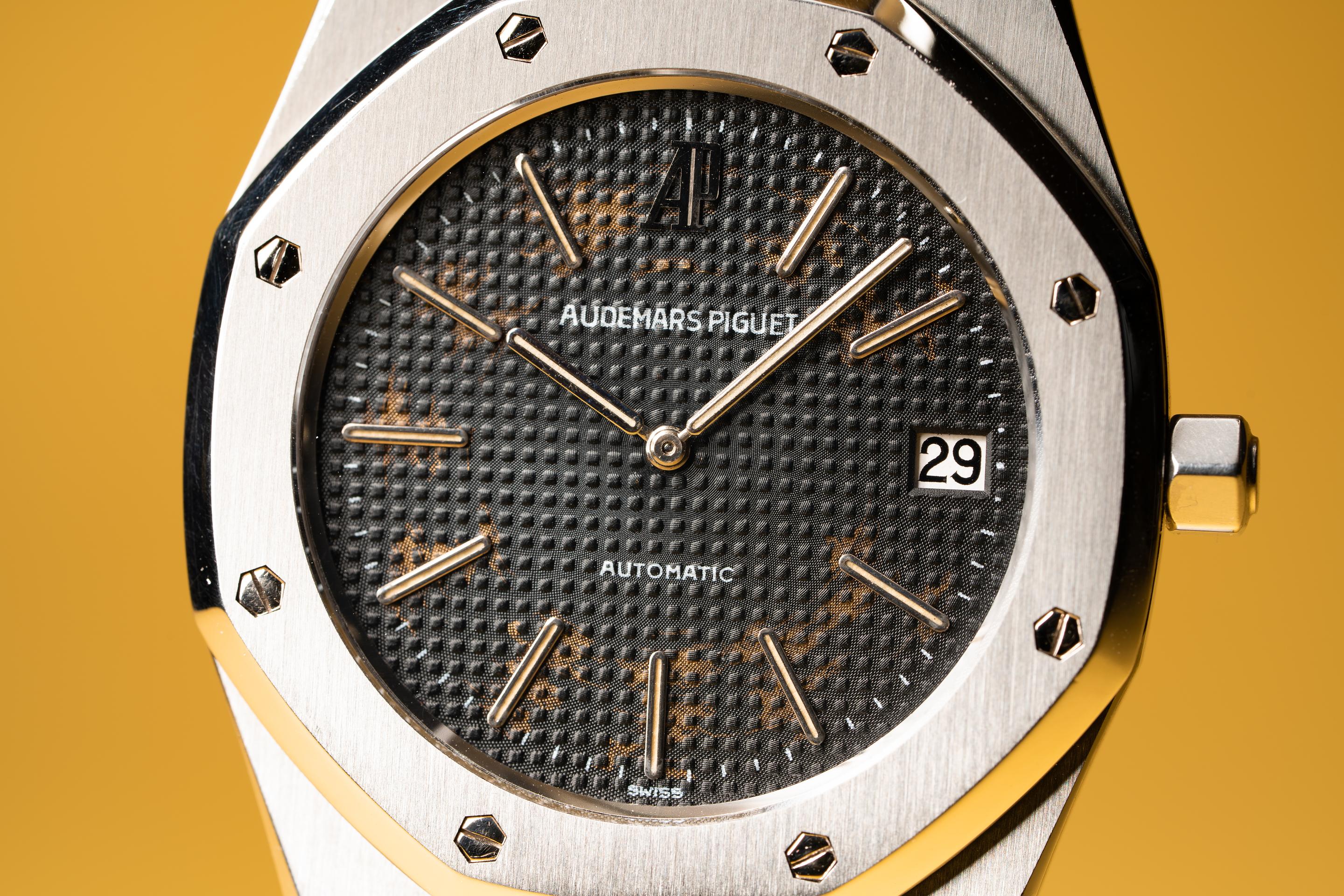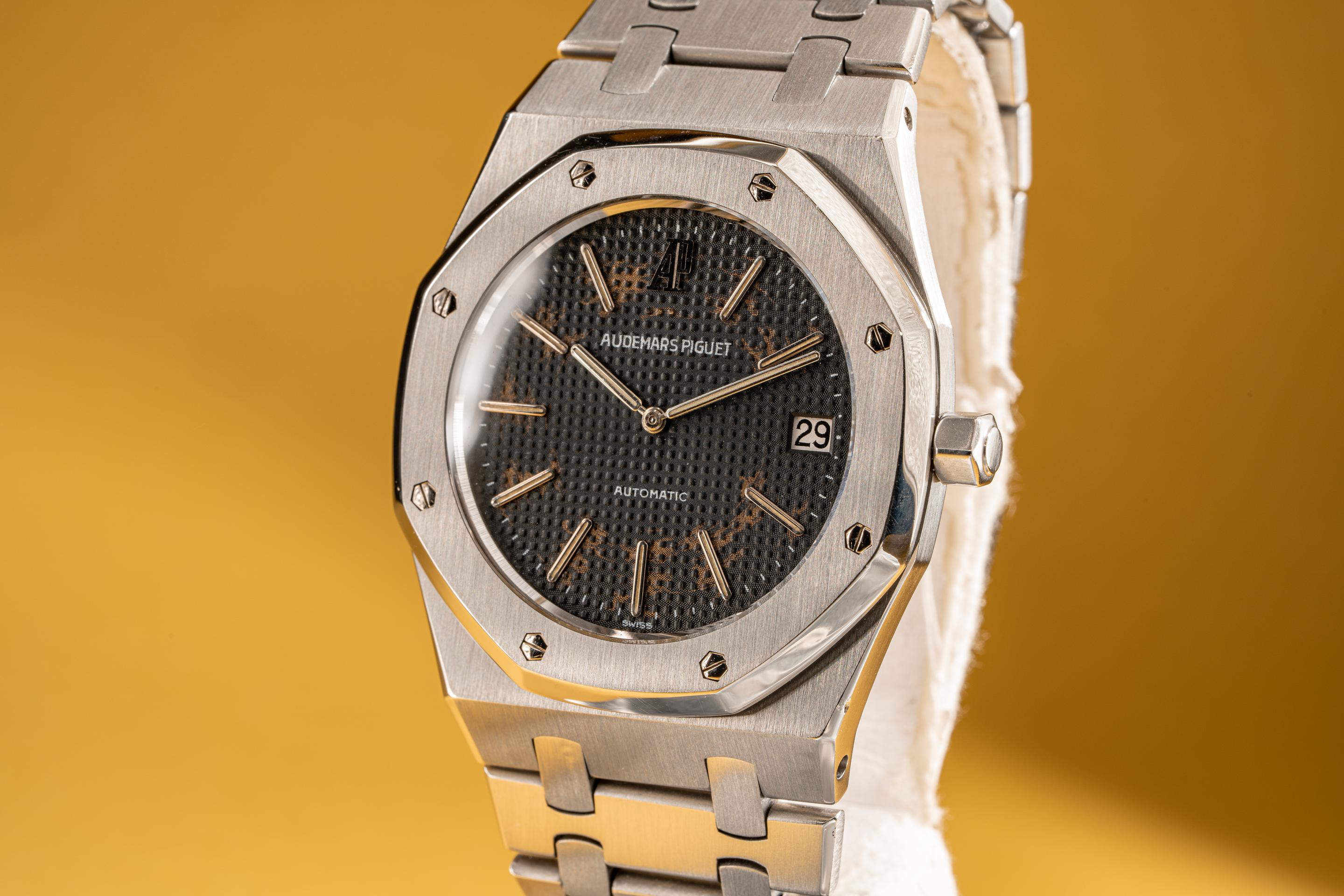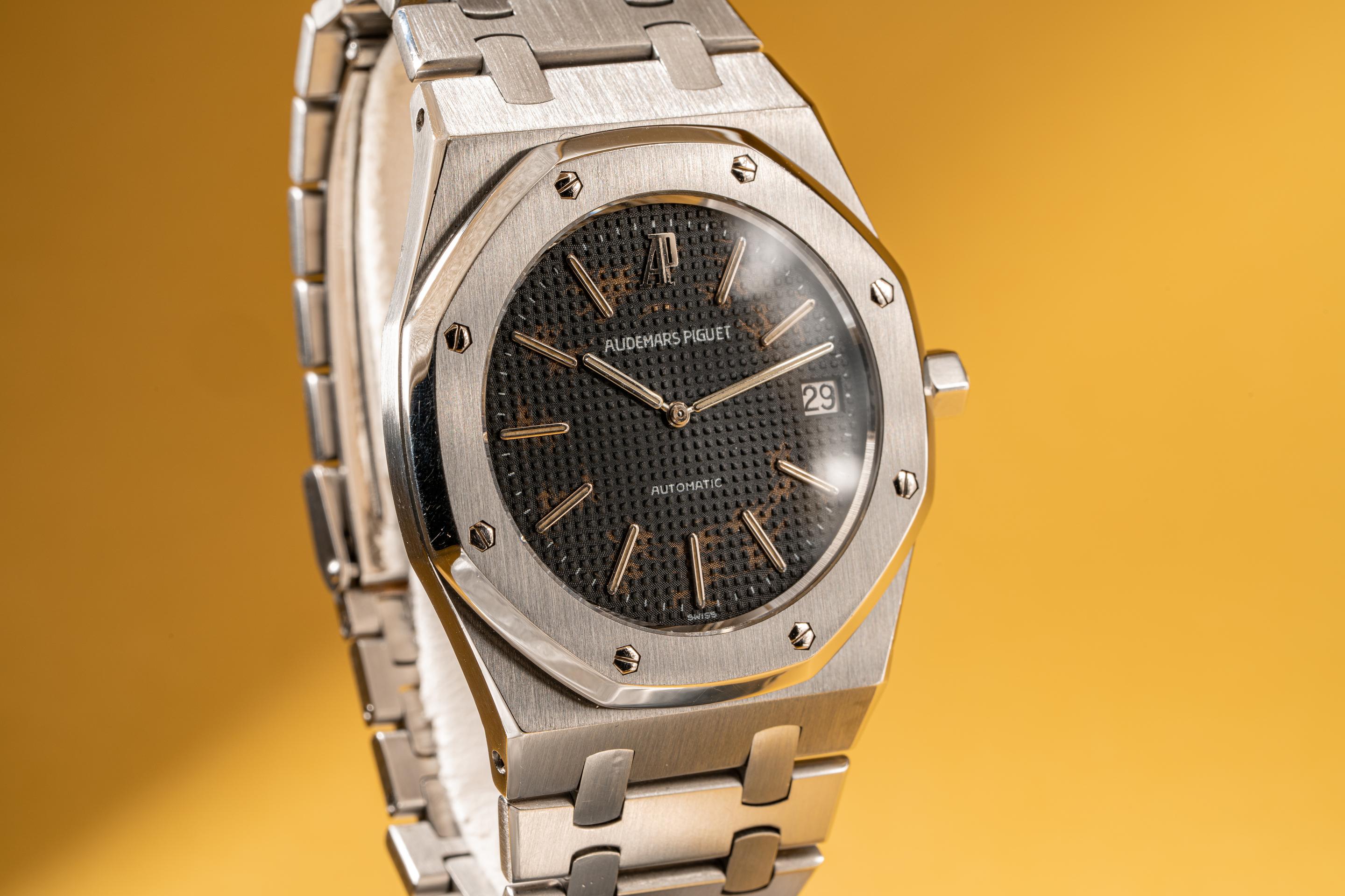 Serial #: D1XXX Description: Case: The sharp case is in excellent condition and shows very light wear from use. The stainless bezel is also in excellent condition and shows very light wear. Dial: The grey dial is fading and is starting to let the warm coppery color of the raw dial show through. The lume has turned a creamy hue and the hands are matching. Bracelet: The 17 link bracelet is very good and has average stretch for its age. The bracelet will fit up to a 6 1/4" wrist. One tapered link was removed from the bracelet for the previous owner Accessories: None. Notes: Though not tropical in the same way we think about Rolex dials aging. The visual element of the raw copper tones showing through the fading lacquer of the AP dials is striking and beautiful. Offered at: $41,550 Feel free to text me at (415) 260-9129 or email me at sales@tropicalwatch.com with any questions that you may have. References upon request. Follow me on instagram: @watchand Full refund minus shipping costs if not happy after 3 day inspection period. Thanks, Jacek |