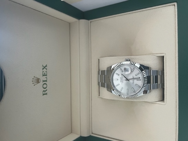 Fluted bezel Oyster bracelet Silver stick dial Brand new, unworn sticker Includes box, hand tag, booklets and warranty card dated 5/17/2022 Asking $11,500. Located in the Bay Area, CA. No trades. Will ship if you provide your own label and paid by wire. I have numerous references on TRF under the Who’s who section and eBay |