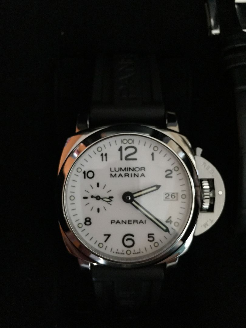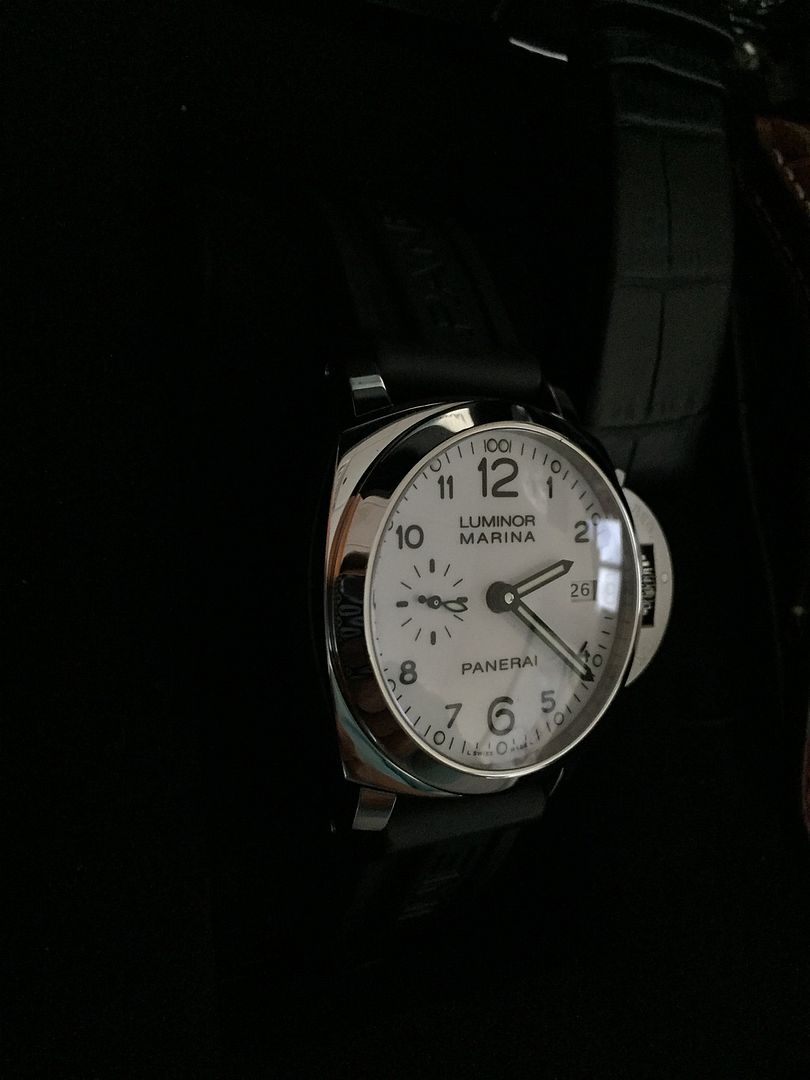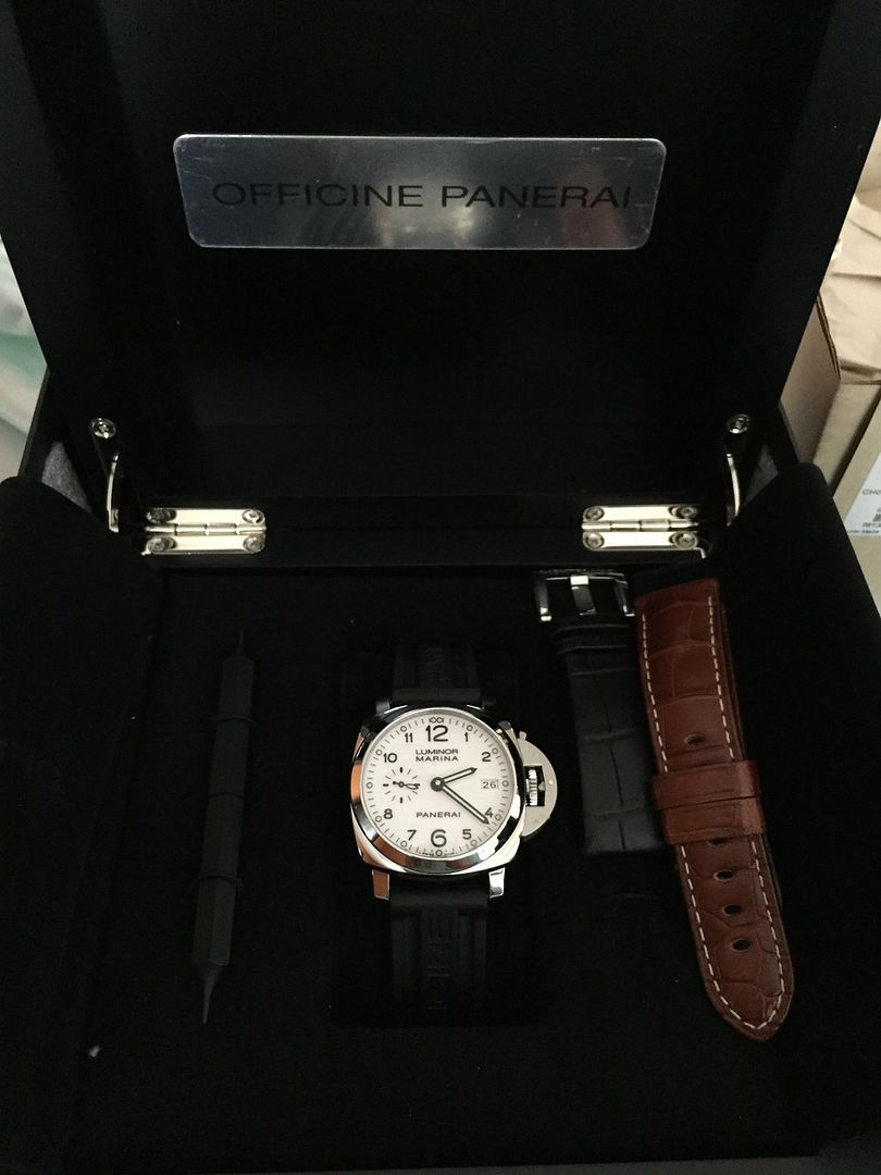 Includes: -PAM 523 watch in immaculate condition -Authentic Panerai black rubber strap with Panerai Tang buckle -Authentic Panerai brown crocodile strap to be used with Tang buckle -Montblanc black crocodile strap with it's own MB Tang buckle -Rubber bezel protector -Strap changing tool -Inner box, outer box, polishing cloth, certificates -Small Panerai watch box from service center -Paperwork from recent service center check up This watch is up for sale since my Apple Watch has yet to leave my wrist since launch date! It was running a few minutes slow before, so I sent it into the Panerai service center for a servicing and they made it new again. It is in absolutely pristine gorgeous condition and has not seen a wrist since returning from service. The watch is located in San Antonio, Texas for anyone interested in a local deal. Looking for sale only. No Trades. CONUS only. Shipping via USPS Priority Mail with insurance. $5500 via bank wire. Add 4% for PayPal. Please email or text with questions or inquiries. jaustindds@me.com 210-393-6902 ![]() ![]() ![]() ![]() ![]() ![]() ![]() ![]() ![]() ![]()