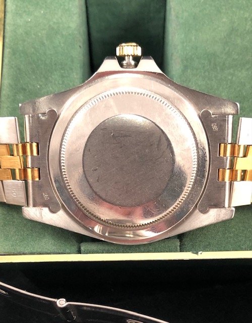 Dial: Clean Condition: Excellent Reference: 16753 Serial: 9.57 Age: late in 1986 Additional: One extra link, two tone bezel Rolex Box Set, Rolex Warranty Paper, Service Manual The watch was originally purchased from Stellar Jewelers in Florida. I purchased it from the owner. The watch has been worn very little and shows no visible scratches other than desk marks on the clasp. $10,500 including shipping in the 48 states. Payment preferred by wire or Zelle. I also purchased a Genuine Black dial and bezel which is available separately. |