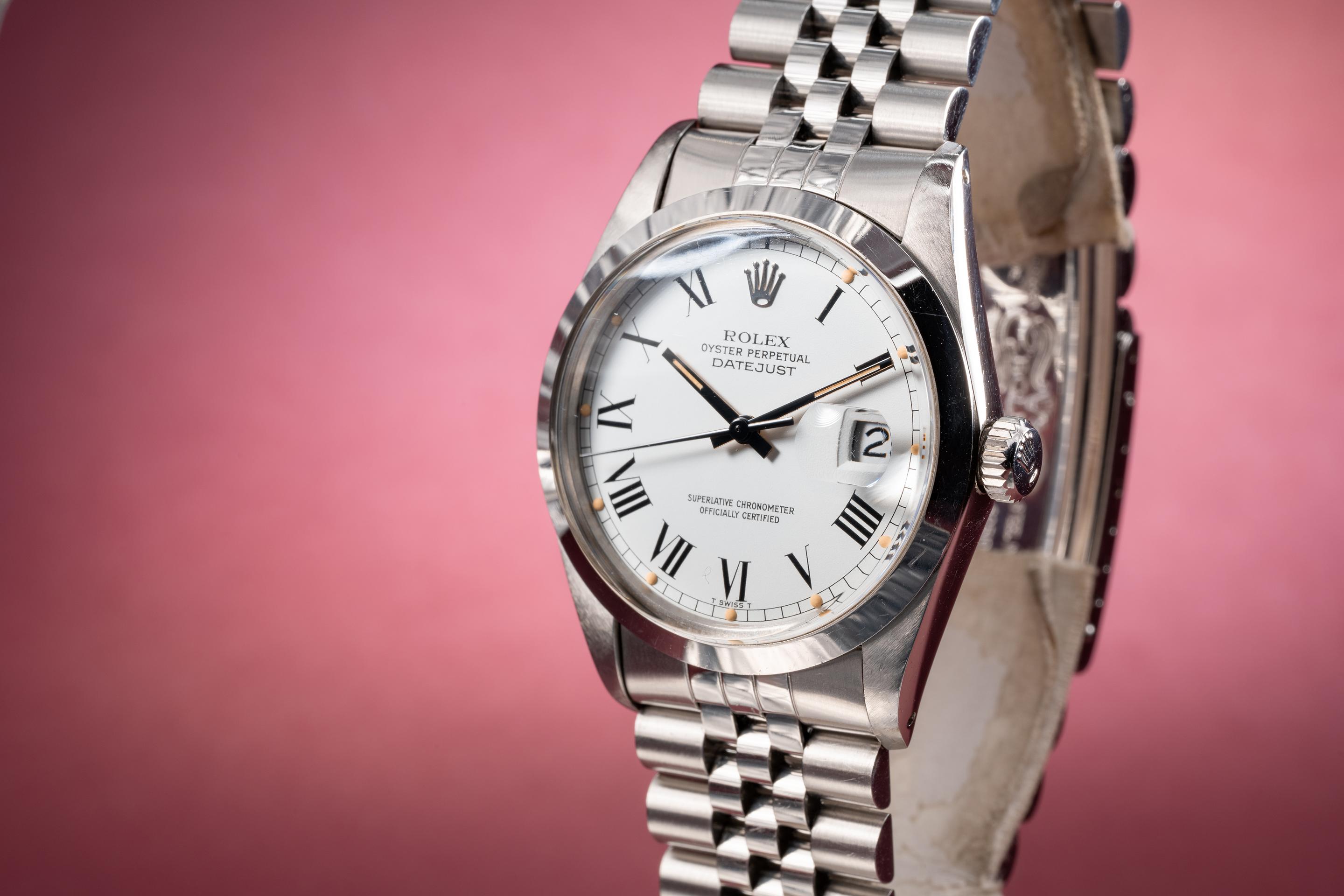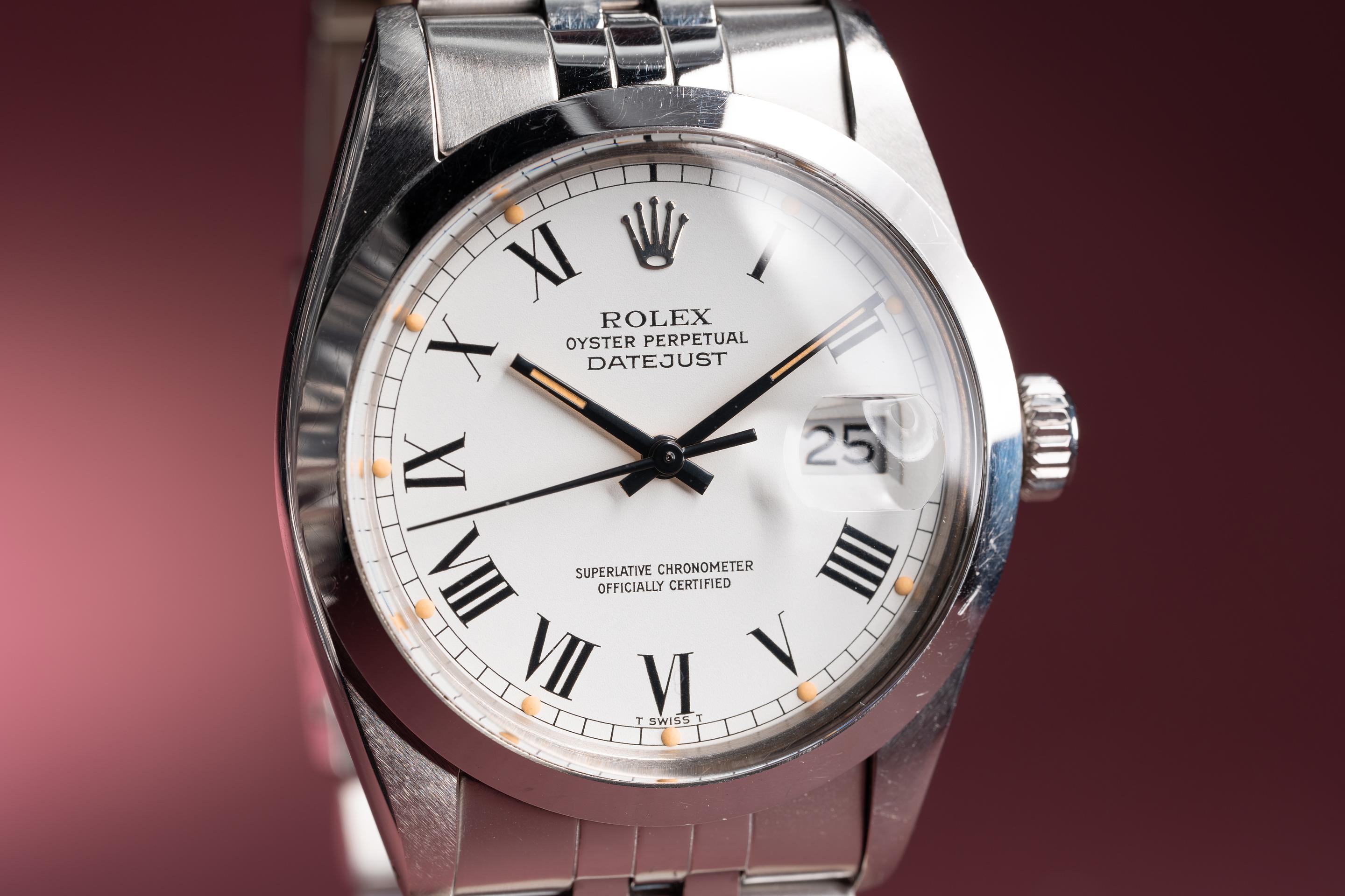 FS: 1982 Rolex DateJust 16000 White Roman Numeral Dial with Papers  Serial #: 7367XXX Description: Case: The thick and even unpolished case. The smooth stainless bezel is also in excellent condition showing only light wear from use. Dial: The matte white Roman numeral dial is excellent showing no visible wear. The lume has aged to a vibrant golden hue and the hands match perfectly. Bracelet: The 22 link Jubilee bracelet is excellent showing only very light stretch for its age. The clasp is stamped with a 1980 date code. Accessories: Papers. Offered at: $14,350 Feel free to text me at (415) 260-9129 or email me at sales@tropicalwatch.com with any questions that you may have. References upon request. Follow me on instagram: @watchand Full refund minus shipping costs if not happy after 3 day inspection period. Thanks, Jacek |