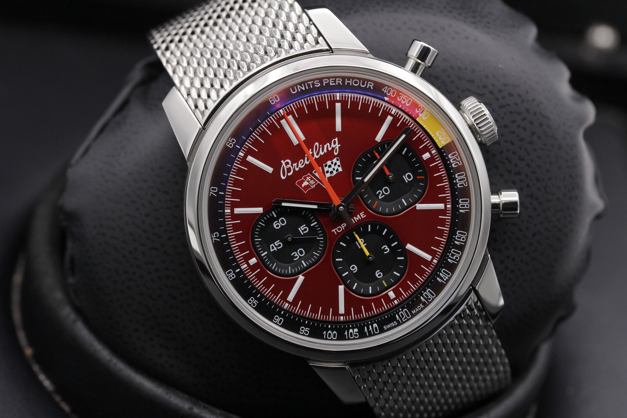 Brand: Breitling Model: Top Time Case Size: 41mm Condition: Pre-Owned Grade: Mint Bracelet Type: Stainless Steel Material: Stainless Steel Dial: Red Age: Modern Movement: Automatic Papers: Yes Box: Yes Reference: AB01761A1K1A1 **Please Note** The serial numbers have been blurred in the photos, for security & privacy. However, they are fully present. Wire Price $5,895.00 Shipped and Insured in the CONUS Many world wide references available All Watches Are Available For Inspection or Pickup By Appointment At: OC Watch Guy 16832 Pacific Coast Highway Huntington Beach, CA 92649 562.592.6294 I am open to trades of 1ct & up GIA Diamonds, modern Rolex, Panerai, Audemars Piguet, Patek Philippe & IWC watches! I welcome a face to face in Southern California I am always a cash buyer for your 1ct & Up GIA Diamond, New or Pre-Owned Rolex, Audemars Piguet or Patek Philippe For questions please call/text Patrick: 714-353-9539 email: Patrick@ocwatchguy.com or Info@ocwatchguy.com *All my watches are guaranteed authentic and I standby their authenticity, 100%!