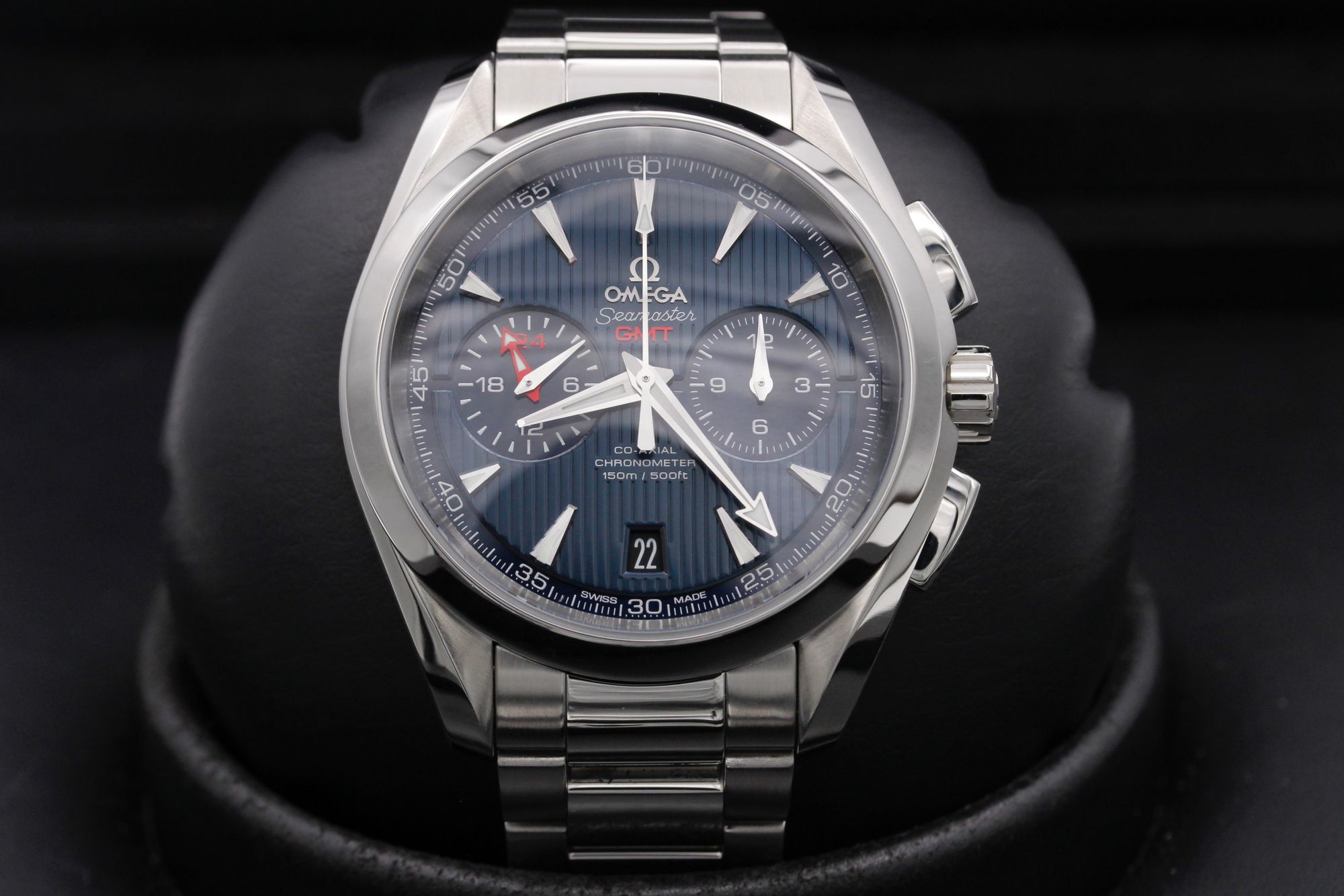 Brand: Omega Model: Seamaster Aqua Terra 150m Chronograph GMT Case Size: 43mm Condition: Pre-Owned Grade: Mint Bracelet Type: Stainless Steel Material: Stainless Steel Dial: Blue Age: Modern Movement: Automatic Papers: Yes Box: Yes Reference: 231.10.43.52.03.001 Additional Notes: Warranty Dated - December 2022 **Please Note** The serial numbers have been blurred in the photos, for security & privacy. However, they are fully present. Wire Price $4,595.00 Shipped and Insured in the CONUS Many world wide references available All Watches Are Available For Inspection or Pickup By Appointment At: OC Watch Guy 16832 Pacific Coast Highway Huntington Beach, CA 92649 562.592.6294 I am open to trades of 1ct & up GIA Diamonds, modern Rolex, Panerai, Audemars Piguet, Patek Philippe & IWC watches! ![]() I welcome a face to face in Southern California ![]() I am always a cash buyer for your 1ct & Up GIA Diamond, New or Pre-Owned Rolex, Audemars Piguet or Patek Philippe ![]() For questions please call/text Patrick: 714-353-9539 email: Patrick@ocwatchguy.com or Info@ocwatchguy.com *All my watches are guaranteed authentic and I standby their authenticity, 100%!