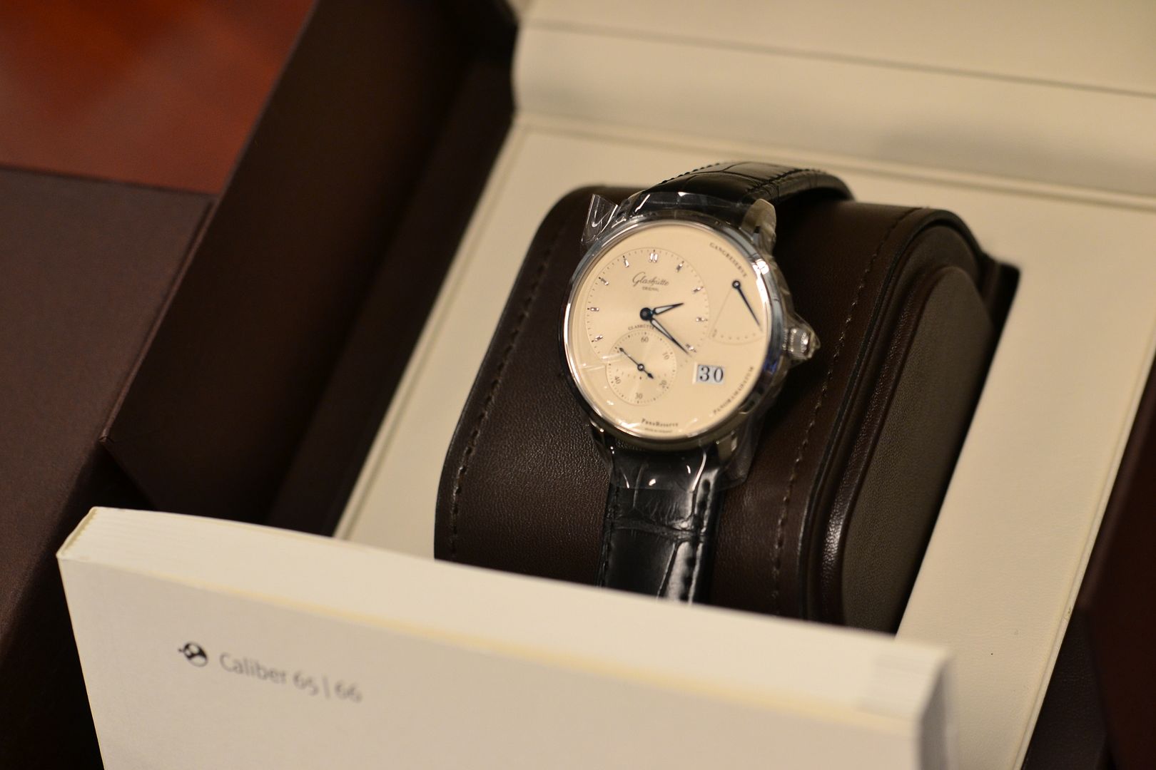 For sale is a 40mm lnib stainless steel Glashutte Original Pano Reserve. Complete box and papers, manual wind in house movement, big date display, power reserve indicator, beautifully blued hands...