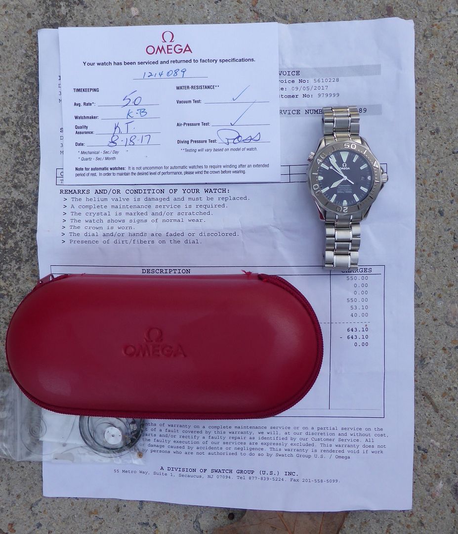 Ref: 2230.50 Condition: Excellent Price: $2700/offers welcome Up for sale is an Omega Seamaster Non-Americas Cup, reference 2230.50. The bezel is white gold, the dial is black. This is a beautiful watch which is getting harder to find. The sale is for the watch, Omega case and instruction manual, will fit a 7 ¼ to 7 ½ inch wrist, no extra links included. The watch was serviced by Swatch and arrived back to me 8/2017. Have the service receipt. If interested, have any questions or want pictures, please contact me at dcourtenayt@yahoo.com or call 843-412-4951 ![]() ![]() ![]() ![]() ![]() ![]() ![]() ![]() ![]() ![]() |