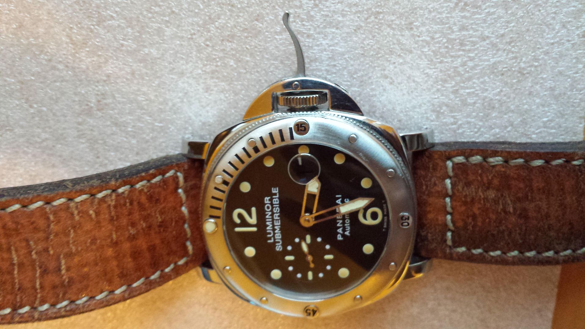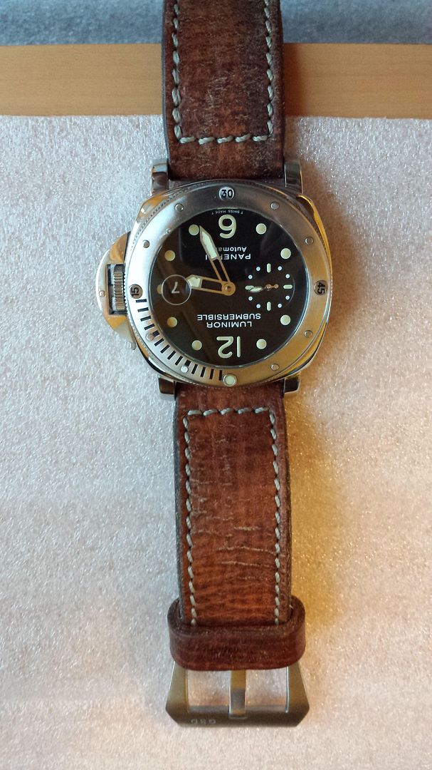 Hi, I am selling Great Panerai Pam 24 E Series 44mm Stainless Steel Luminor Submersible Automatic Diver 300m Brushed Bezel. Uni-directional Rotating Professional Diver's Bezel. Hands have some slight oxidation with some light scratches on the case. Rubber Panerai and Nylon Panerai straps are unworn. Watch was and is worn on a Greg Stevens custom strap in absolutely mint condition.