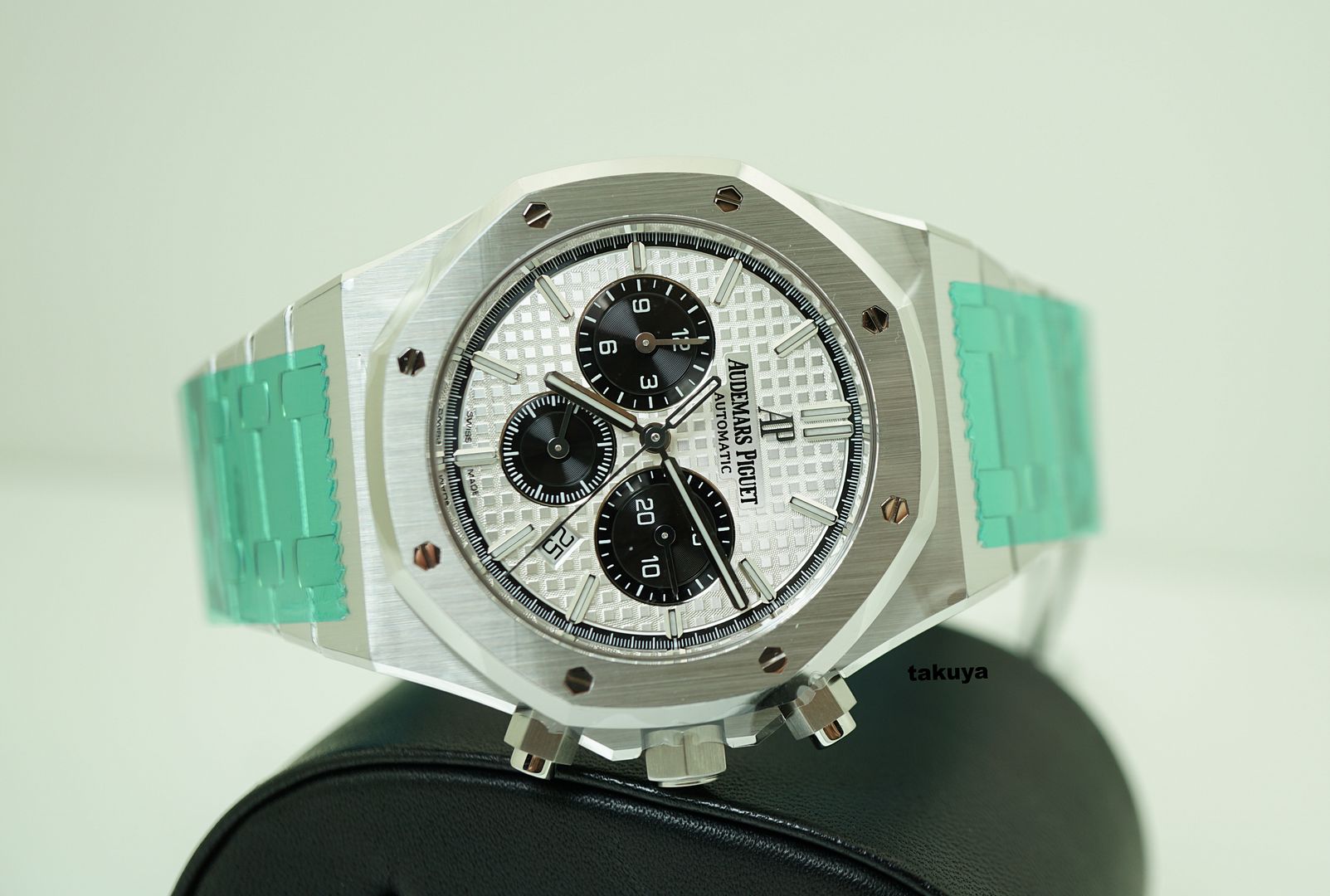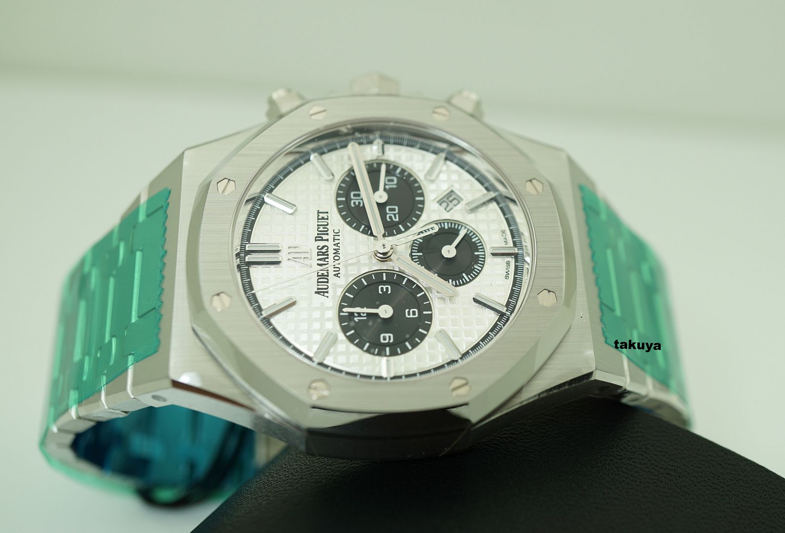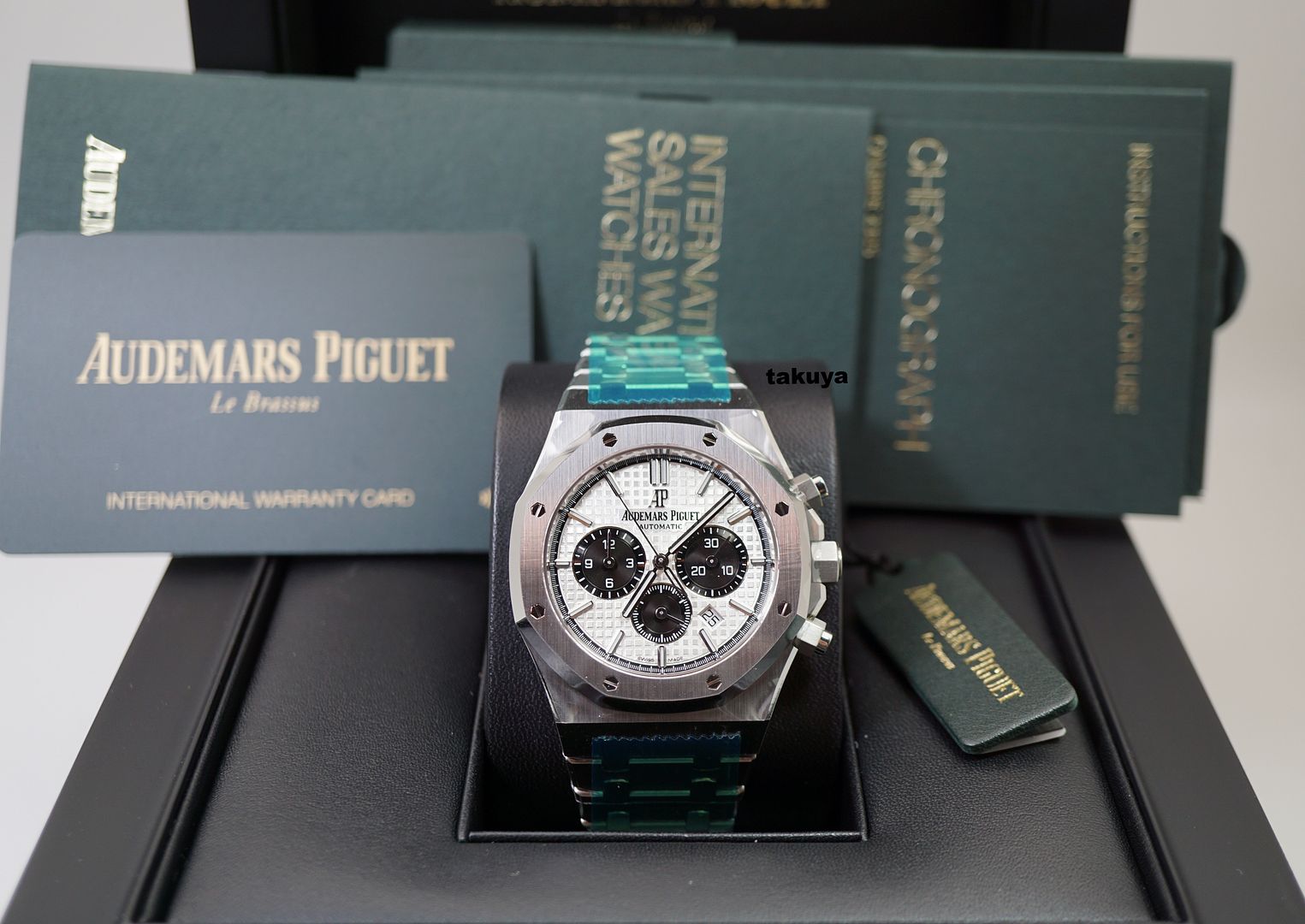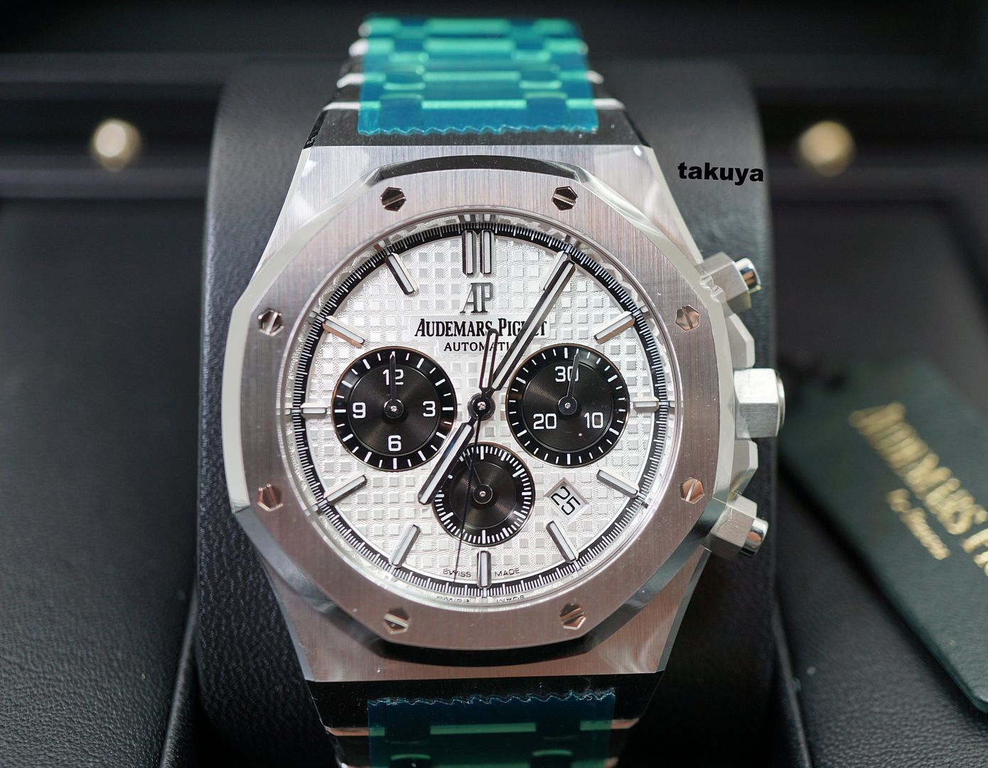 Hi, Selling A Completely Brand New in Box & Very Beautiful Novelty 2017 Model 41mm Audemars Piguet Royal Oak Chronograph in Stainless Steel, White / Silver-toned dial with “Grande Tapisserie” pattern, black counters and extern zone, in Latest J Series. Purchased from Audemars Piguet Authorized Dealer on 2018. Full Stickers Intact. Never Worn & Never Sized. Full Set & 5 Years Factory Warranty.