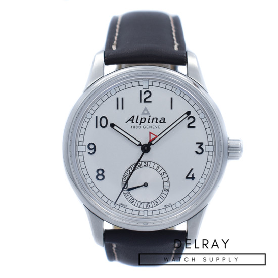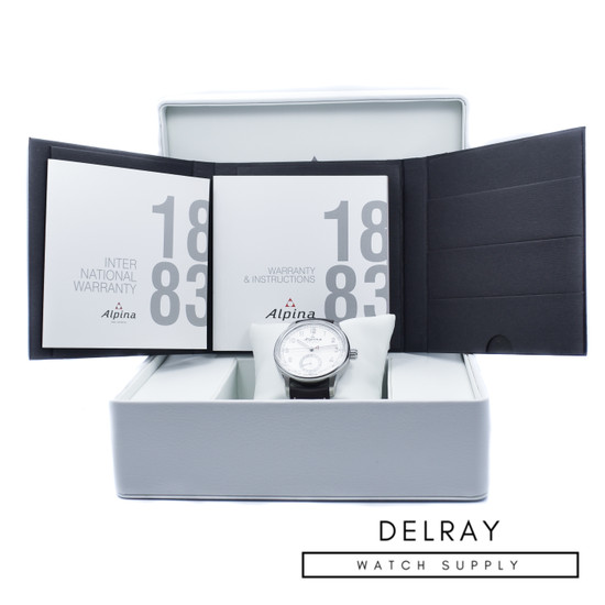 The watch comes shipped fully insured for free to the US, international orders are also welcome- please contact for more details. I am truly here to help. Thank you! John PLEASE SEE OUR WEBSITE FOR MORE IMAGES OR TO CHECKOUT. $1199 Brand: Alpina Model Name: Alpiner Reference: AL-710S4E6 Condition: Pre-Owned. Very Good Condition. Shows light signs of wear. Strap: Calf- Used Case Size: 41.5mm Case Metal: Stainless Steel Movement: Automatic Functions: Time, Date Box and Papers: Yes. Both Box and Papers. *CERTIFIED 100% AUTHENTIC - ALL WATCHES ARE GUARANTEED TO BE 100% AUTHENTIC. ![]() ![]() |