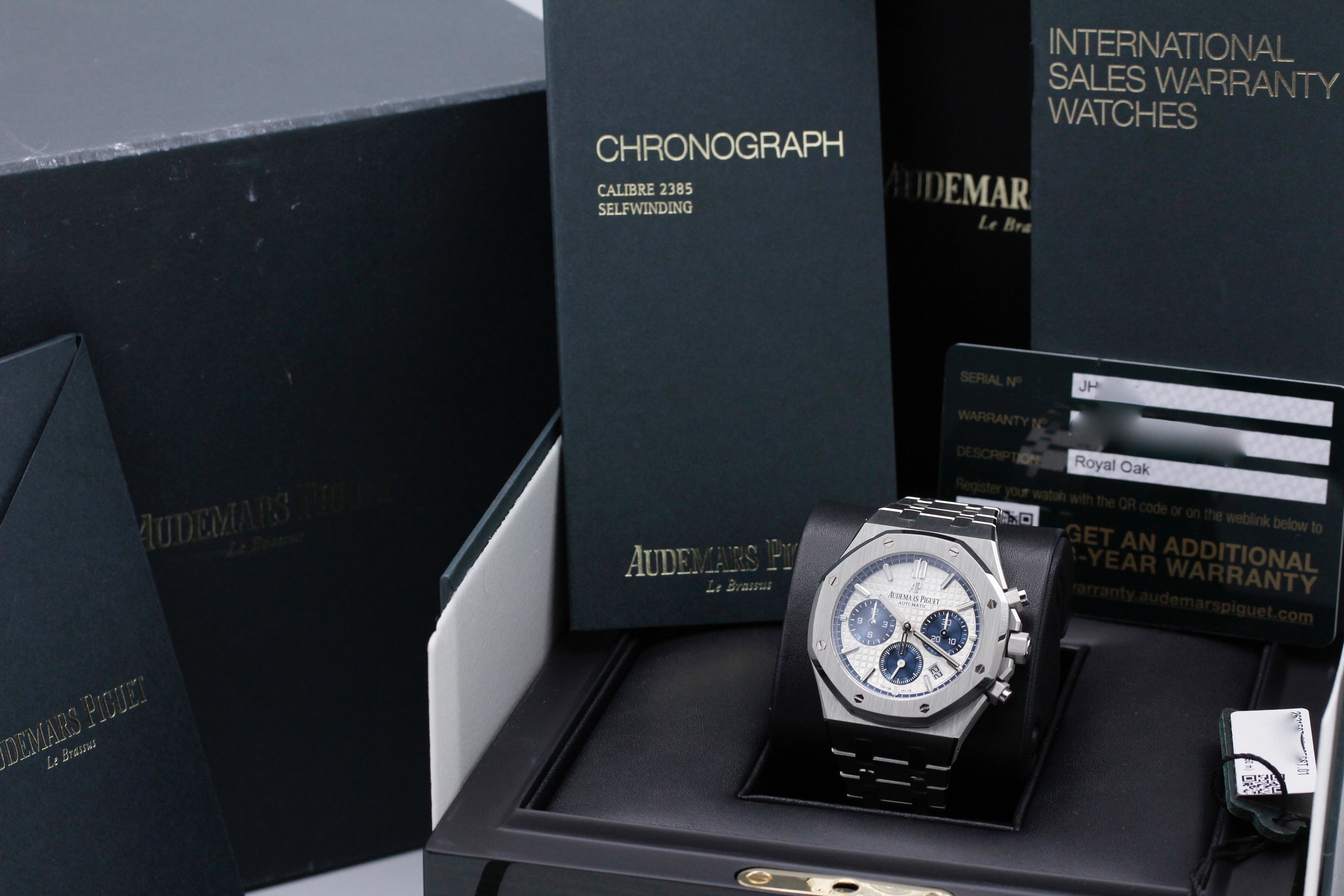 ![]() Audemars Piguet, Royal Oak, Chronograph, Stainless Steel, Silver w. Blue Sub Dials, 38mm Condition: Mint Serial: JH Reference: 26315st.oo.1256st.01 Included: Audemars Piguet Box Set, Audemars Piguet Warranty Card, Hand Tag, Service Booklet & Manual (Everything Pictured) **Please Note** The serial numbers have been blurred in the photos, for security & privacy. However, they are fully present. Selling Price: $31,595 by Bank Wire - PayPal + Fees - AFFIRM Financing Is Available Through WWW.OCWATCHGUY.COM Shipping Is Included - FedEx Priority Overnight - Full Insurance - Signature Required - Within The United States Many world wide references available I am open to trades of 1ct & up GIA Diamonds, modern Rolex, Panerai, Audemars Piguet, Patek Philippe & IWC watches! ![]() All Watches Are Available For Inspection or Pickup By Appointment At: OC Watch Guy 16832 Pacific Coast Highway Huntington Beach, CA 92649 I am always a cash buyer for your 1ct & Up GIA Diamond, New or Pre-Owned Rolex, Audemars Piguet or Patek Philippe ![]() For questions please call/text Patrick: 714-353-9539 Email: Patrick@ocwatchguy.com or Info@ocwatchguy.com Please check our website for our latest arrivals: www.ocwatchguy.com All my watches are guaranteed authentic and I stand by their authenticity, 100%! ![]()