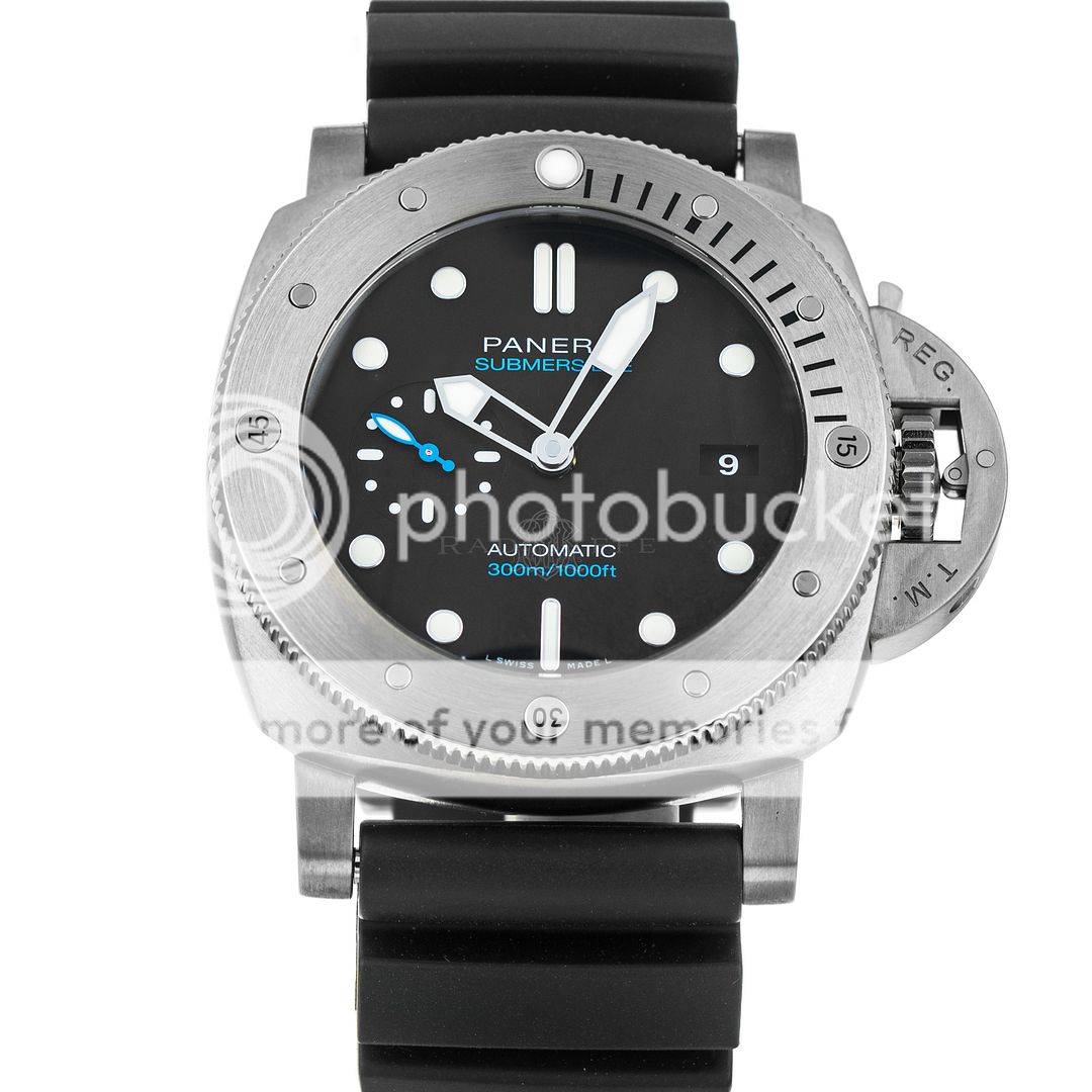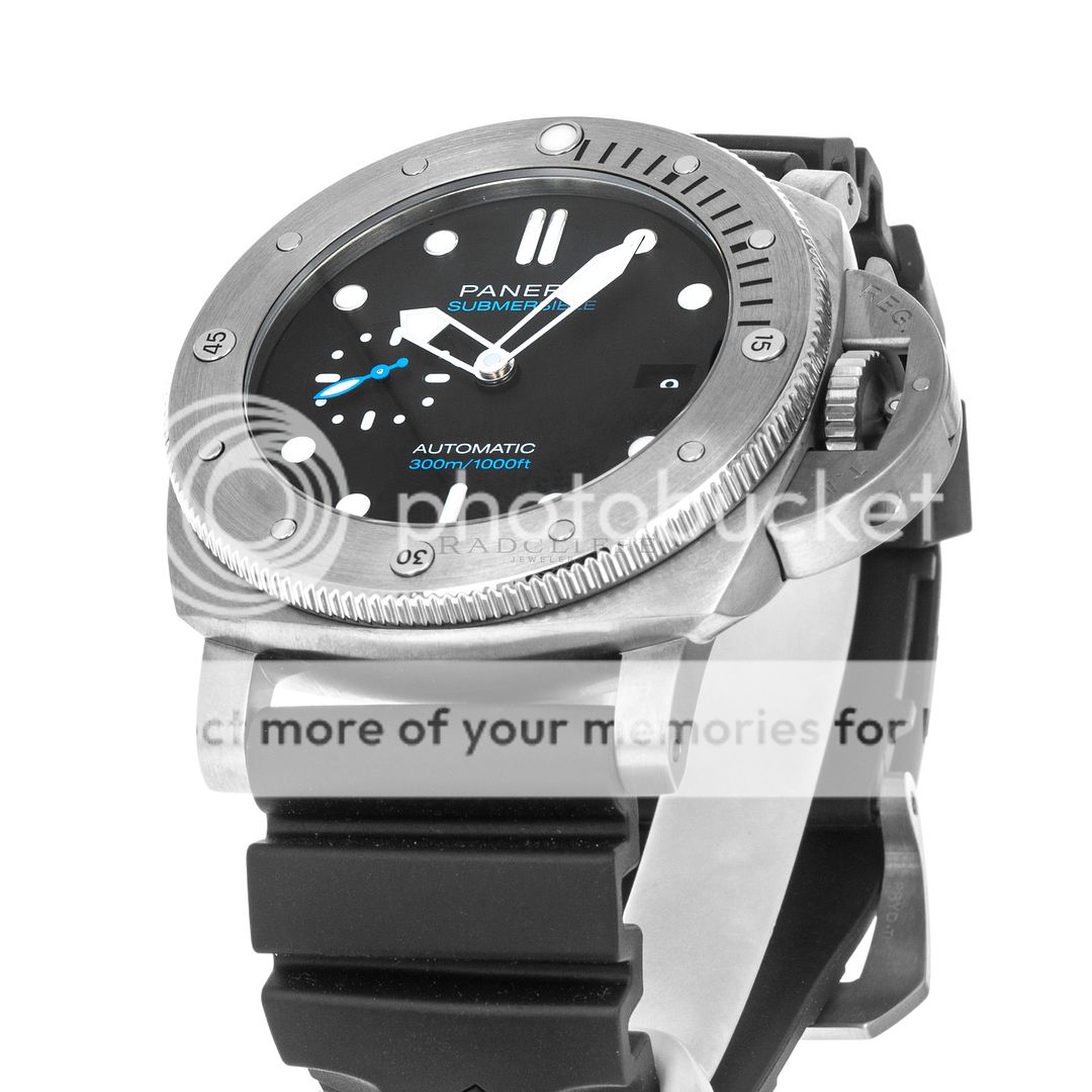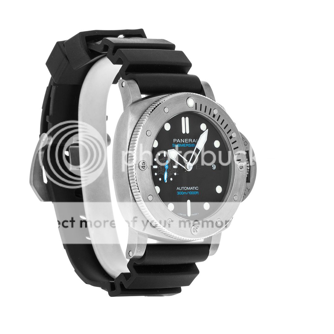 For sale is a pre-owned near mint condition 47mm titanium Panerai Luminor Submersible. This sale of the PAM1305 will be accompanied by box and papers. This includes a Panerai box set, an extra standard length strap, a bezel protector, booklets, and an international warranty card dated June of 2020. The Submersible’s black dial features luminescent round indices, luminescent skeleton hands, a small seconds sub dial at the nine o’clock position, and a date aperture at the three o’clock position. The brushed titanium case is in near mint condition with no notable imperfections. The Submersible is affixed with a bidirectional coin edge titanium bezel and is mounted on a standard length black rubber strap with a brushed titanium tang buckle. Powering the Submersible is an automatic movement caliber P.9010 with approximately 72 hours of power reserve. Shall deliver with remainder of the eight-year manufacturer warranty on the movement for $6,975 plus sales tax or duties. All timepieces come with a 7 day ‘no questions asked’ return period- will issue 100% refund as long as the timepiece is returned in the same condition in which it was shipped out. Protect your timepiece by adding a 3-Year Buckle-to-Buckle care plan. With our care plan you receive services and coverages such as: • Mechanical failure caused by accidental damage • Replacement of scratched or broken crystals • Broken Stem or Crown • Replace Damaged or broken clasps or links • Replace worn or damaged straps/attachments • Polish/refinish of your case & bracelet Message for more details.          .jpg?width=1920&height=1080&fit=bounds)