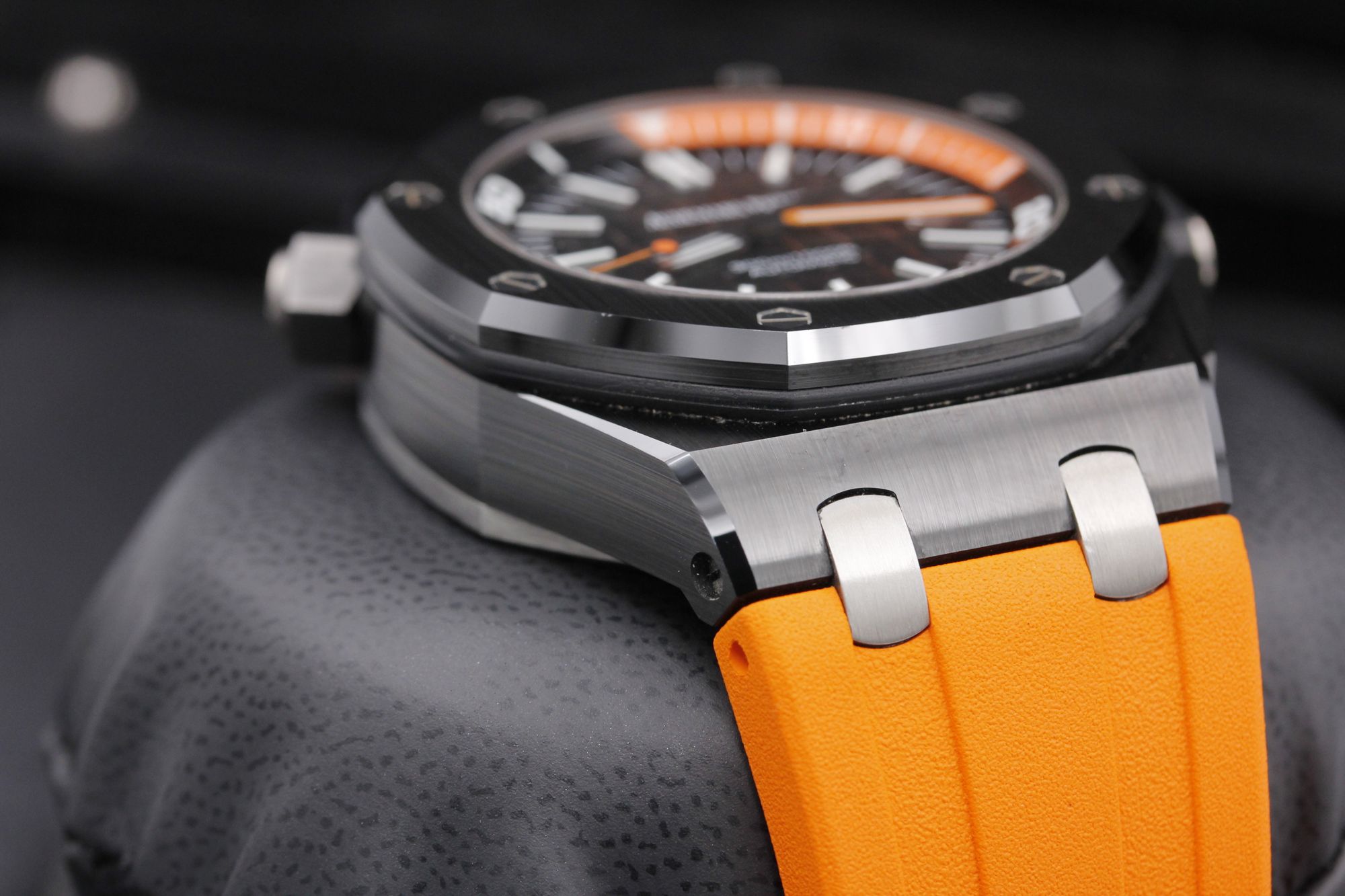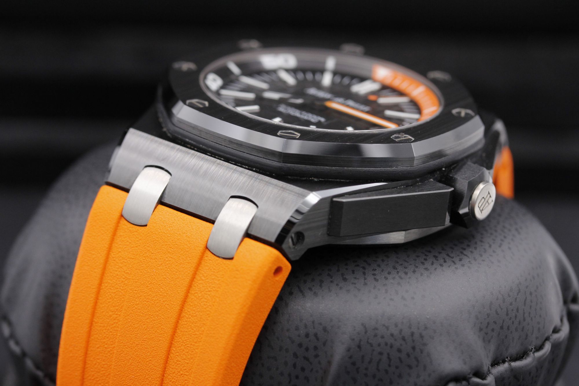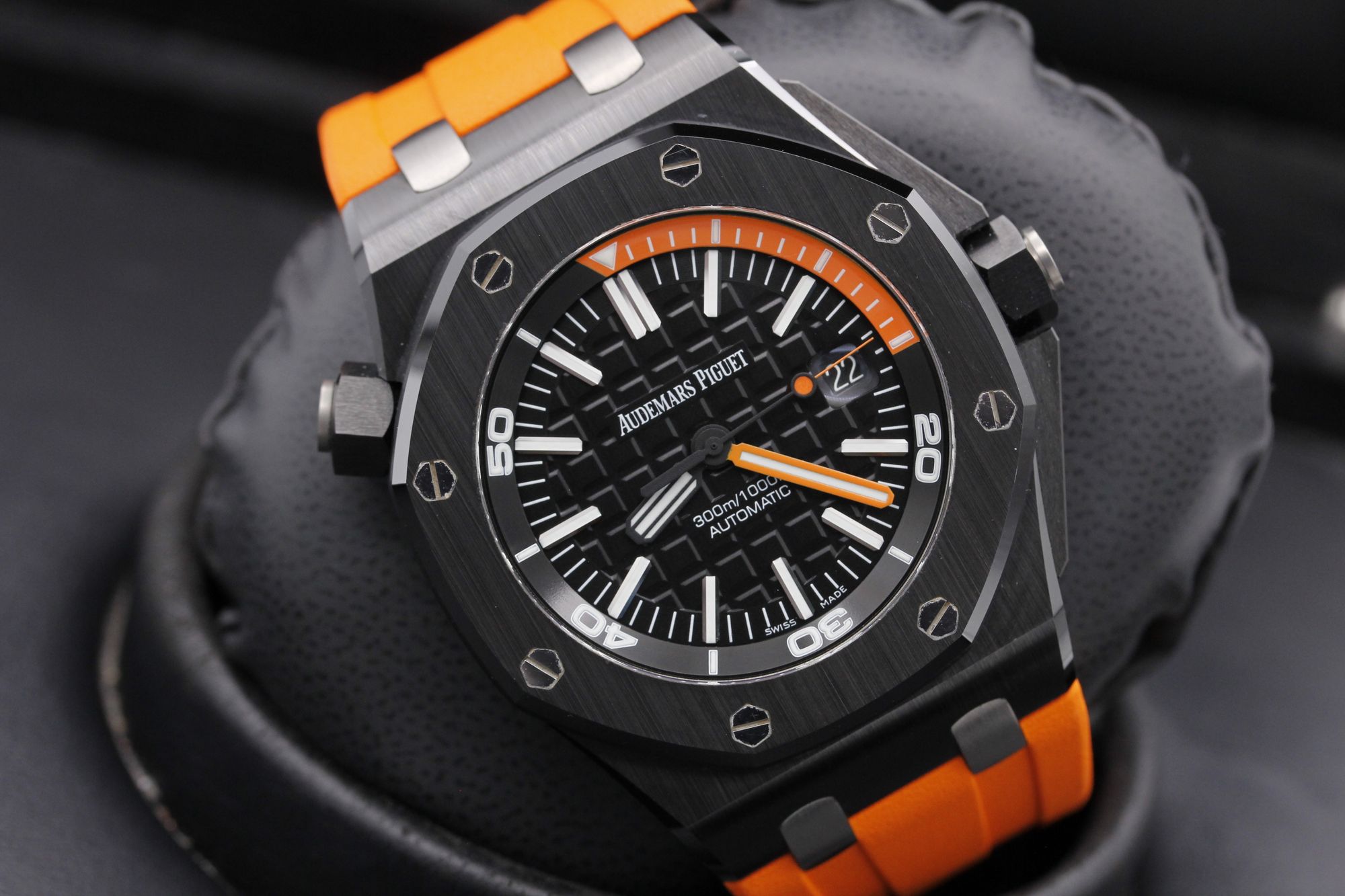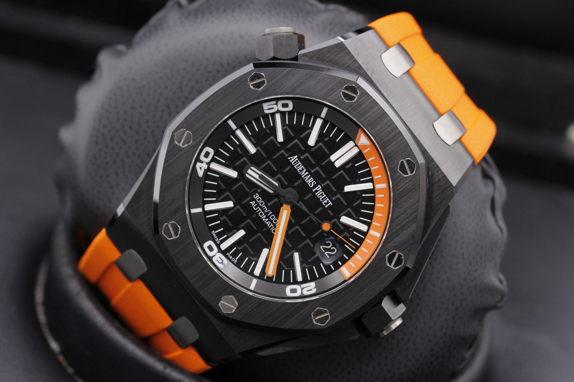 Brand: Audemars Piguet Model: Royal Oak Offshore Diver Reference: 15707CE.OO.A002CA.01 Condition: Pre-Owned Grade: Mint Case Size: 42mm Material: Ceramic Dial: Black Bracelet Type: Rubber Movement: Automatic - Date Serial: I Age: Modern Box: Yes Papers: Yes Additional Notes: Warranty Booklet Dated - November 2014 **Please Note** The serial numbers have been blurred in the photos, for security & privacy. However, they are fully present. Wire Price $29,895.00 Shipped and Insured in the CONUS Many world wide references available All Watches Are Available For Inspection or Pickup By Appointment At: OC Watch Guy 16832 Pacific Coast Highway Huntington Beach, CA 92649 562.592.6294 I am open to trades of 1ct & up GIA Diamonds, modern Rolex, Panerai, Audemars Piguet, Patek Philippe & IWC watches! I welcome a face to face in Southern California I am always a cash buyer for your 1ct & Up GIA Diamond, New or Pre-Owned Rolex, Audemars Piguet or Patek Philippe For questions please call/text Patrick: 714-353-9539 email: Patrick@ocwatchguy.com or Info@ocwatchguy.com *All my watches are guaranteed authentic and I standby their authenticity, 100%!