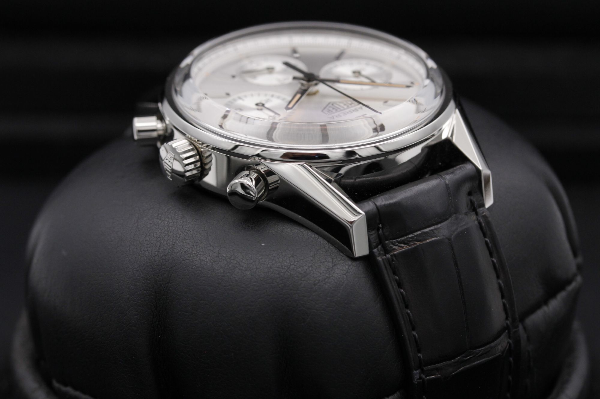 Brand: TAG Heuer Model: Carrera Case Size: 39mm Condition: Pre-Owned Grade: Mint Bracelet Type: Alligator Material: Stainless Steel Dial: Silver Age: Modern Movement: Automatic Papers: Yes Box: Yes Reference: CBK221B.FC6479 Additional Notes: Warranty Dated - November 2020 **Please Note** The serial numbers have been blurred in the photos, for security & privacy. However, they are fully present. Wire Price $5,595.00 Shipped and Insured in the CONUS Many world wide references available All Watches Are Available For Inspection or Pickup By Appointment At: OC Watch Guy 16832 Pacific Coast Highway Huntington Beach, CA 92649 562.592.6294 I am open to trades of 1ct & up GIA Diamonds, modern Rolex, Panerai, Audemars Piguet, Patek Philippe & IWC watches! I welcome a face to face in Southern California I am always a cash buyer for your 1ct & Up GIA Diamond, New or Pre-Owned Rolex, Audemars Piguet or Patek Philippe For questions please call/text Patrick: 714-353-9539 email: Patrick@ocwatchguy.com or Info@ocwatchguy.com *All my watches are guaranteed authentic and I standby their authenticity, 100%!